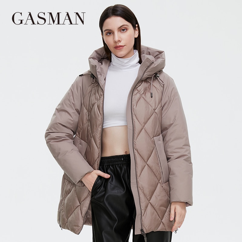 GASMAN 2022 Winter down jacket collection Fashion Solid Stand-up collar Women Coat Elegance Hooded Women's jackets 8198