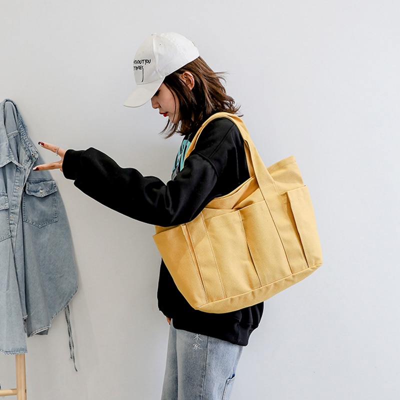 Women's Tote Bag Large Capacity Handbags For Women 2022 Trend Canvas Casual Shopper Solid Travel Shoulder School Shopping Bags