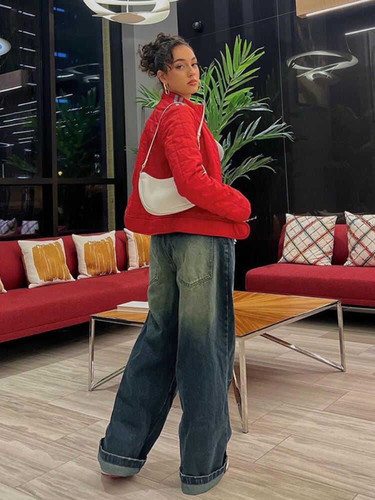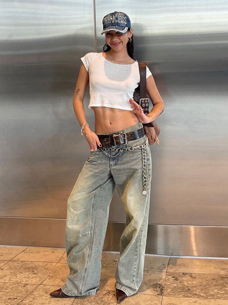 Vintage Gradient Flared Jeans Washed High Waisted Baggy Pants 2023 Korean Fashion Streetwear Wide Leg Long Denim Trousers y2k