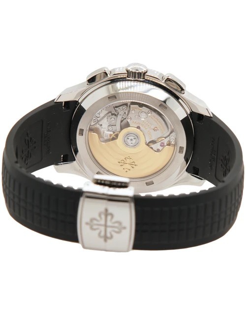 This Patek Philippe Aquanaut 5968A-001 has a black arabic dial and a rubber strap. This Patek Philippe has undergone a thorough inspection of water resistance, accuracy, functionality and condition to determine the level of reconditioning required to meet our strict standards. It has also been referenced against technical documents and manufacturer records where available to ensure authenticity and a clean history. All our watches have a 24-month warranty for your peace of mind.